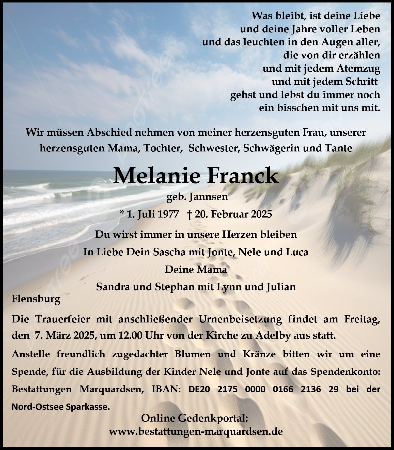 Unser aufrichtiges Beileid zum Tode von Melli. Wir wünschen Euch viel Kraft für die schwere Zeit. Bine und Thomas